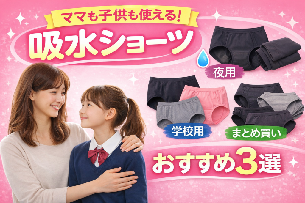 ママも子供も使える!吸水ショーツおすすめ3選 子供の生理が始まったけど、学校でナプキン交換が不安… 在宅の日や生理終わりかけはナプキンを使いたくない… そんなときに便利なのが吸水ショーツです。 実は吸水ショーツは、ママと子供で一緒に使えるアイテ...