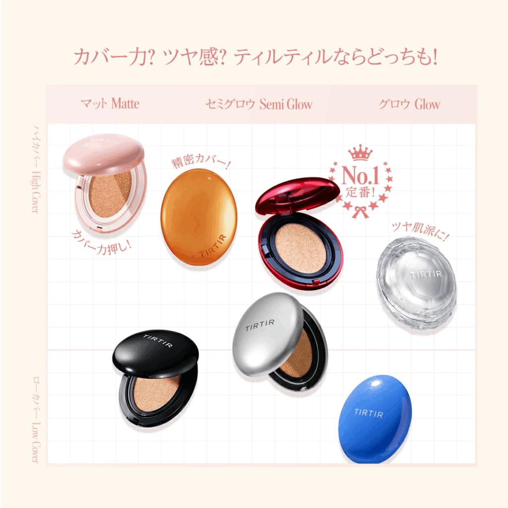 「崩れない」「ツヤが長持ちする」と話題の韓国コスメ、TIRTIR(ティルティル)マスクフィットクッションシリーズ。