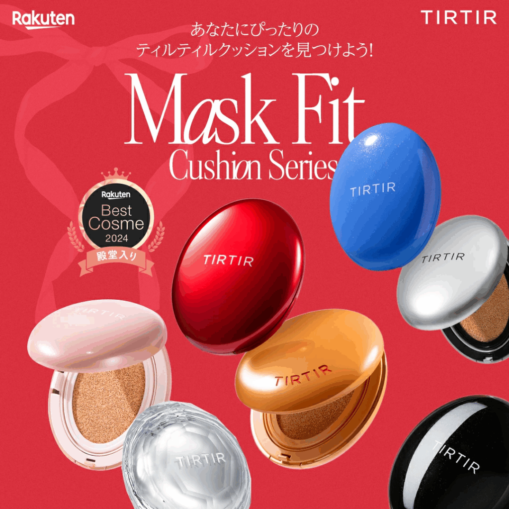 TIRTIR(ティルティル)は、韓国発のスキンケア発想ブランド。中でも「マスクフィットクッション」は、 長時間崩れにくく、マスク移りしにくいことで人気を集めています。 シリーズには「AI(エアリー)」「レッド」「クリスタルメッシュ」など、仕上がりやカバー力の異なるタイプが揃っています。
