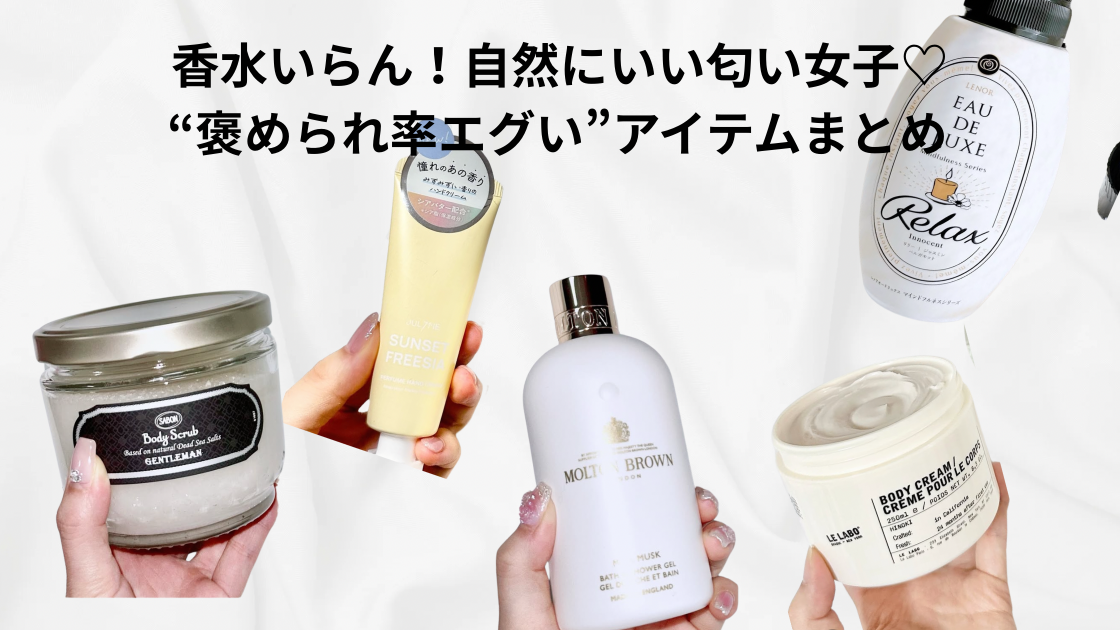 ここで紹介するのは、いわゆる“THE 香水”ではなく、柔軟剤・ボディクリーム・ハンドクリーム・バス&シャワージェル・ボディスクラブなど、日常使いしやすい香りアイテムたち。