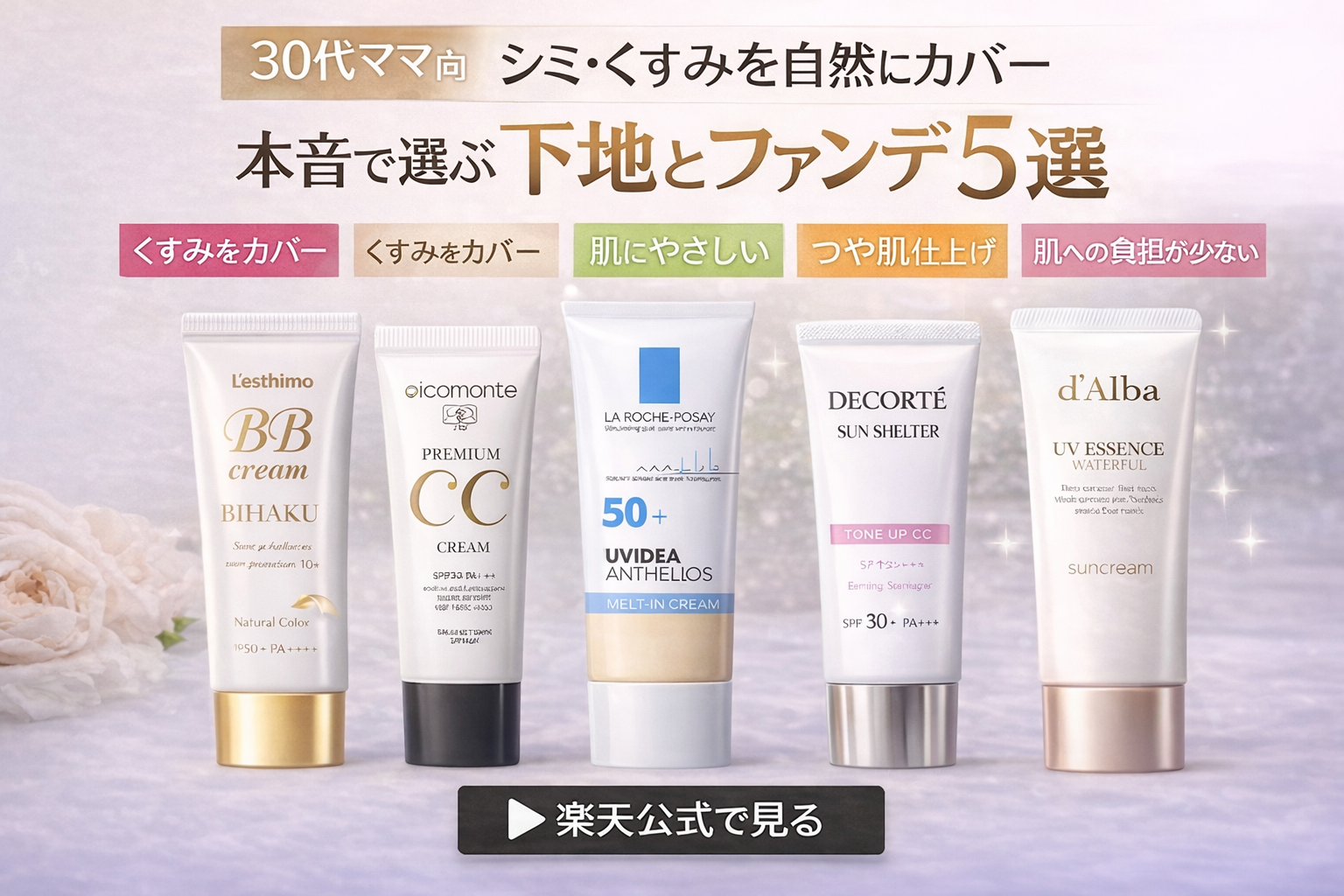 この記事では、忙しい30代ママ目線で 「続いた」「失敗しにくい」下地・ファンデを厳選しました。