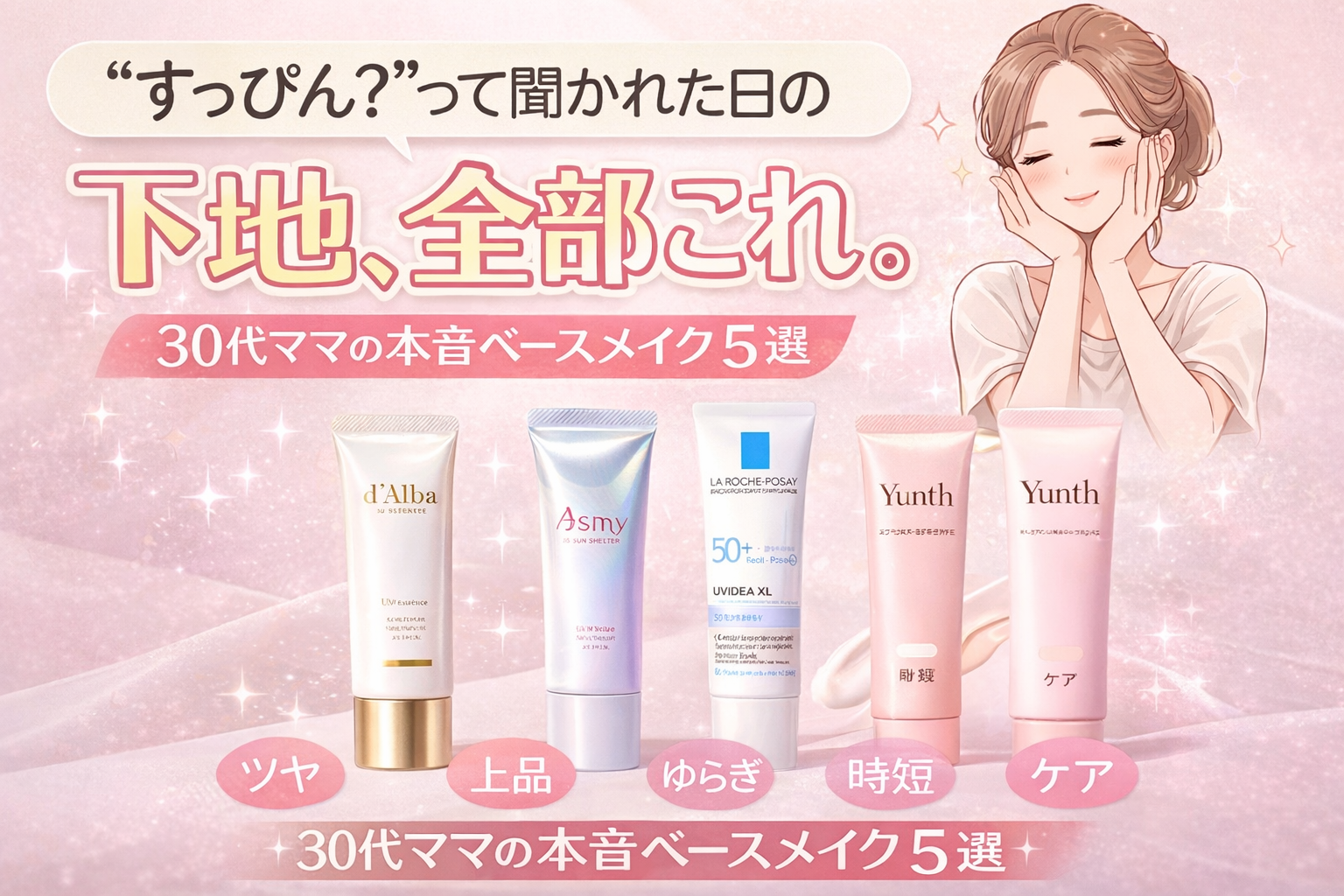 「すっぴん?」って聞かれた日の下地、全部これ。|30代ママの本音ベースメイク5選