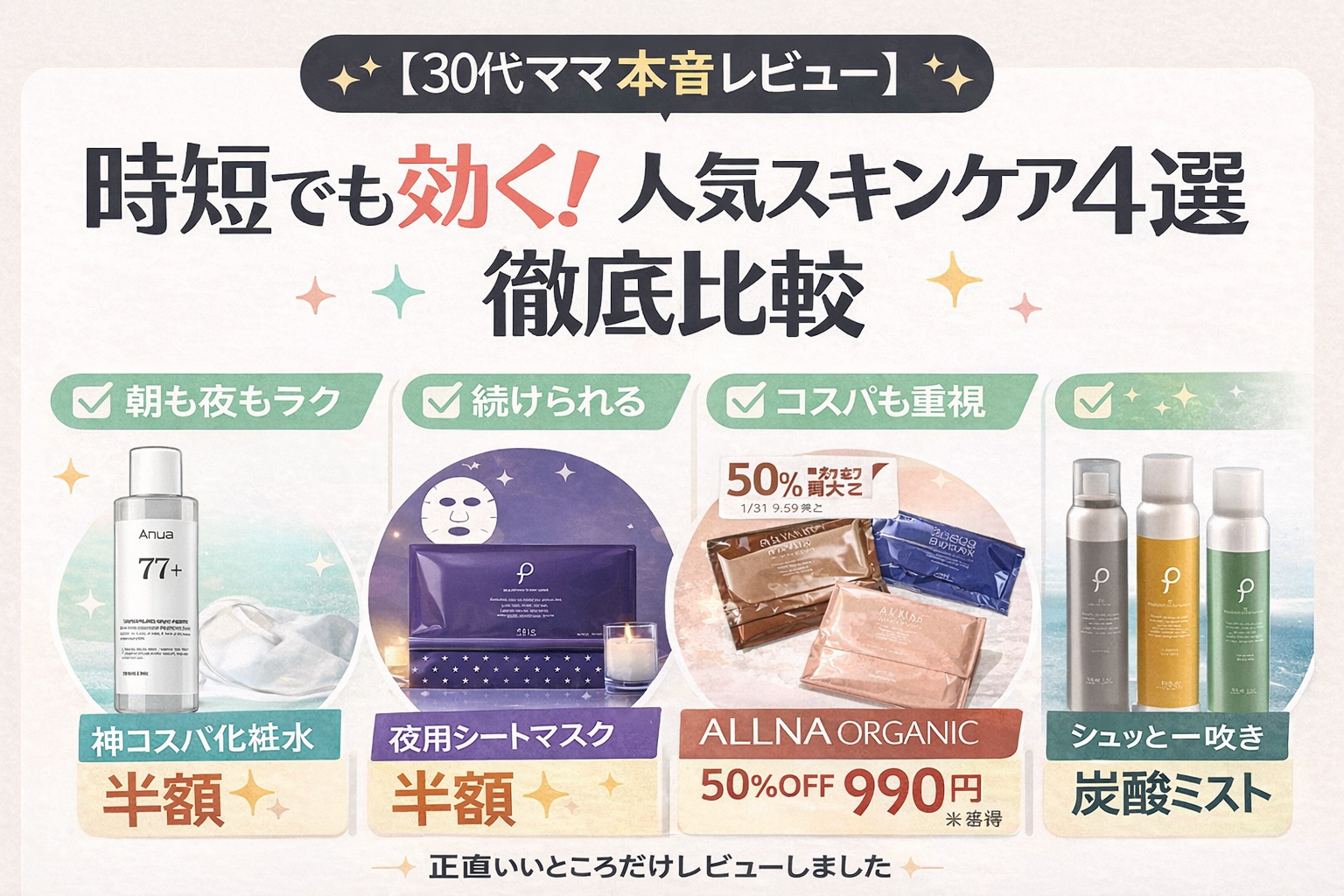 そんな忙しい30代ママ目線で、“時短なのにちゃんと効いた”スキンケア4つを本音でレビューします。
